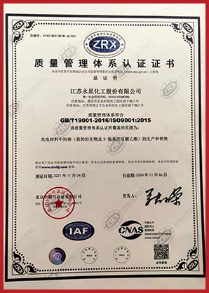 江蘇永星化工股份有限公司成立于2010年,位于江蘇省宿遷市宿豫區(qū)生態(tài)化工科技產(chǎn)業(yè)園揚(yáng)子路6號(hào),注冊(cè)資本3215.463萬元,占地105畝,分為南北兩個(gè)廠區(qū)。